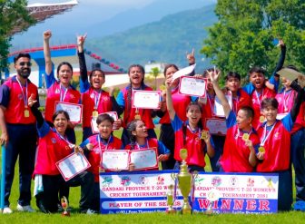 पोखरा । पोखरामा आज(सोमबार) सम्पन्न भएको महिला किक्रेट प्रतियोगितामा स्याङजा च्याम्पियन भएको छ ।कास्कीलाई ४५ रनले पराजित पराजित गर्दे स्याङजा च्याम्पियन बनेको हो । च्याम्पियन भए संगै स्याङजले नगद १ लाख साथमा ट्रफी, मेडल तथा प्रमाणपत्र प्राप्त गर्दा उपविजेता बनेको कास्कीले नगद रु ५० हजारसहित ट्रफी, मेडल तथा प्रमाणपत्रमा चित्त बुझाउन पर्यो । यहि असार ७ गते सुरु भएको प्रतियोगितामा सहभागि चार टिम मध्ये स्याङजा अपराजित रहेको छ । सोमबार भएको फाइनलमा समेत टस जितेर पारीको सुरुवात गर्दै स्याङजाले पुरै… पुरा पढौ